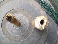 Las pruebas no fueron para nada auspiciosas, la masilla epóxica se ablandó, se abrió más el agujero de la tobera, quemó lento (no sabemos si por baja presión o por combustible de mala calidad), quedó un residuo de tipo plástico a la salida.