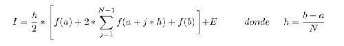 Nota: en la fórmula aparece el valor E, que representa el error cometido en la aproximación de trapecios, eso permite poner el signo de igual.